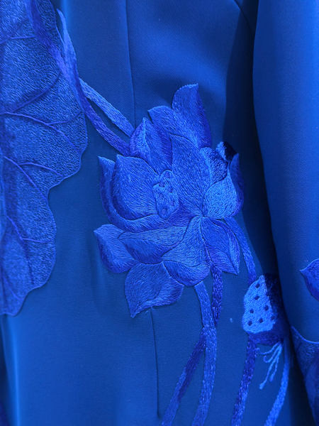 Mọc lên từ bùn lầy nhưng vẫn giữ trọn vẻ đẹp tinh khiết, hoa sen tượng trưng cho phẩm chất thanh tao, thuần khiết, trong sáng và sự thiêng liêng trong tâm thức người Việt. Từng đóa sen được các nghệ nhân thêu tay tỉ mỉ, tinh xảo trên chất liệu vải cao cấp, giúp tôn lên vẻ đẹp thanh lịch và duyên dáng của người mặc.