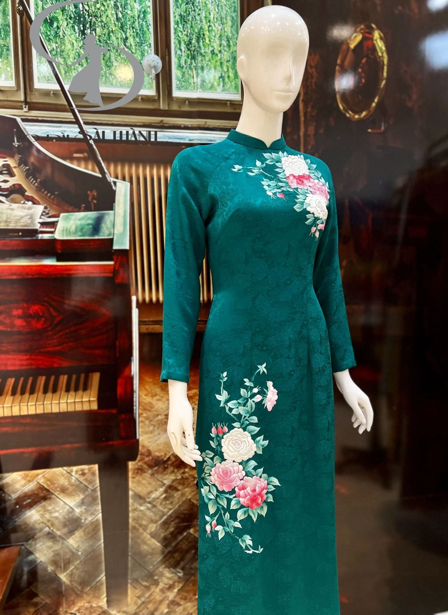 Áo dài chất liệu tơ tằm tự nhiên 100%, được thiết kế thêu hoa hồng thủ công làm hoàn toàn bởi đôi tay khéo léo của đội ngũ Áo Dài Sài Thành. Áo Dài xanh ngọc lục bảo sang trọng quý phái, phù hợp với các doanh nhân, mẹ chồng...... Áo dài xanh ngọc lục bảo tơ tằm giúp bạn rạng ngời, hoàn hảo trong các sự kiện